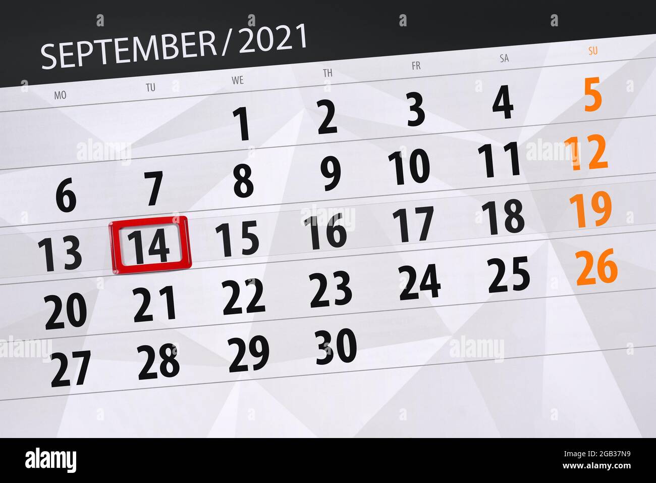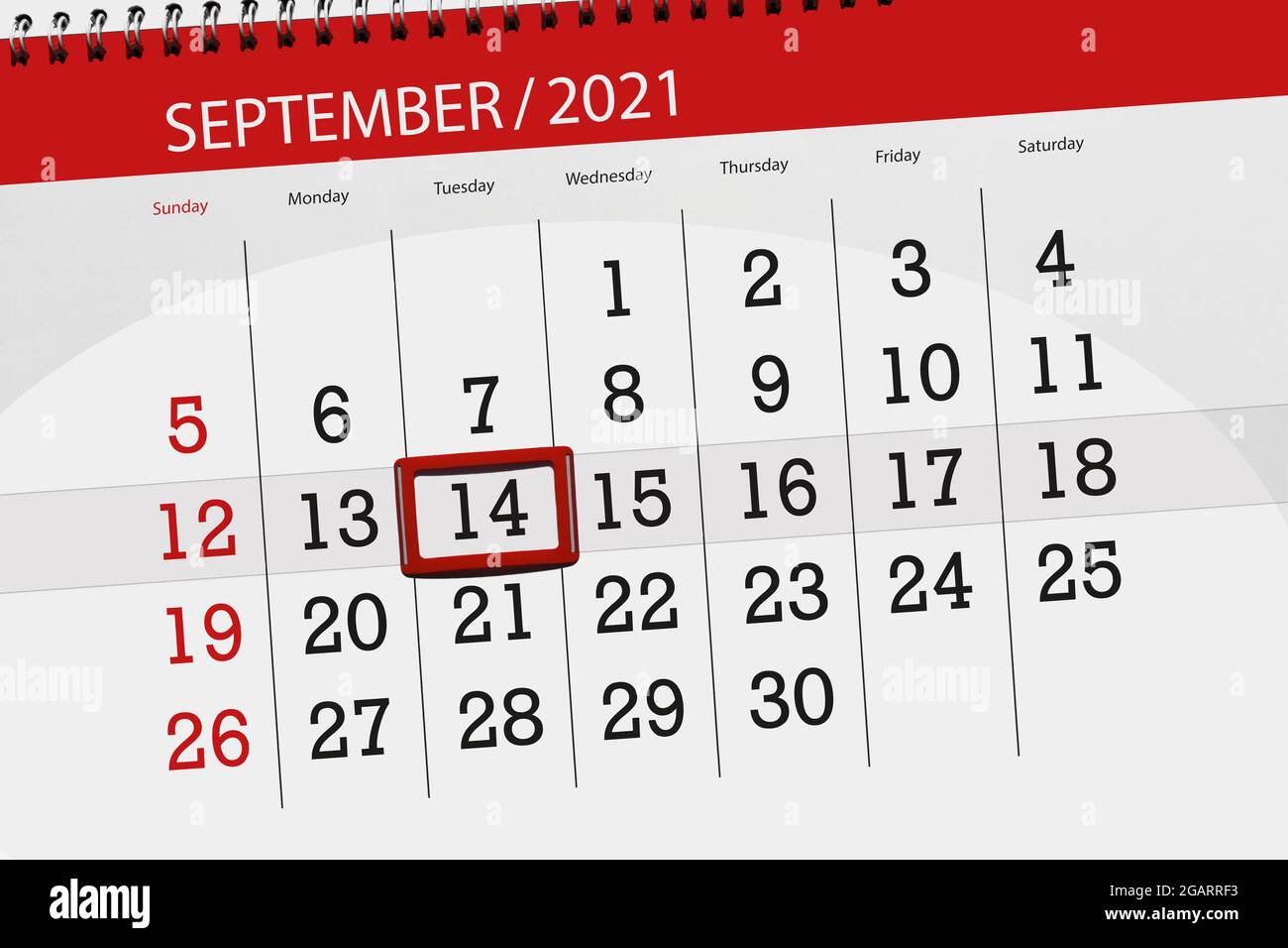 Calendar Planner For The Month September 2021 Deadline Day 14 Tuesday Stock Photo Alamy