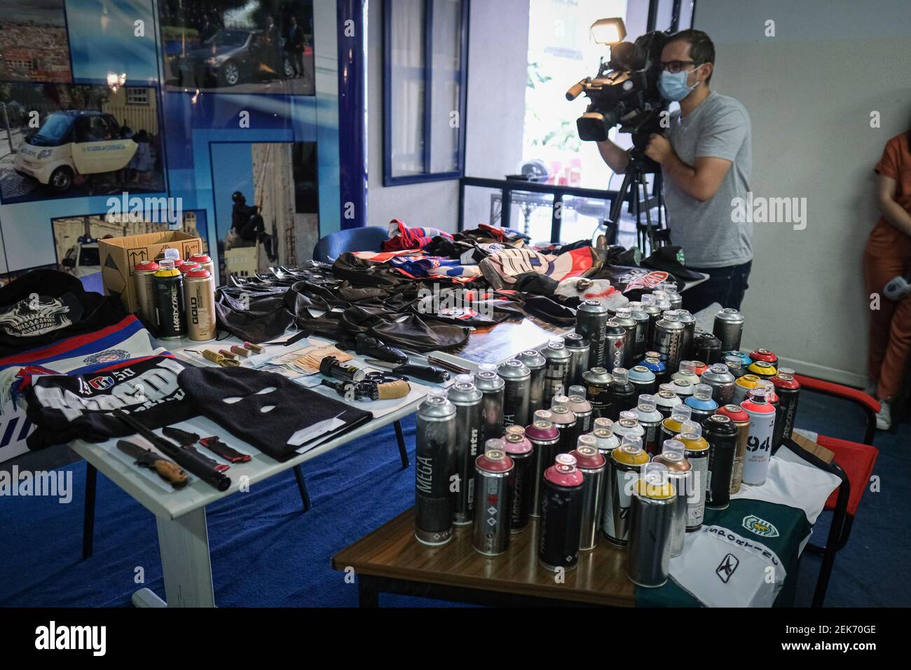 Lissabon 06 25 2020 Eine Pressekonferenz Uber Die Verhaftung Von 7 Mitgliedern Der Nn No Name Boys Kader Fand Heute Morgen In Der 3rd Division Kader In Benfica Statt Erfasste Objekte Gerardo