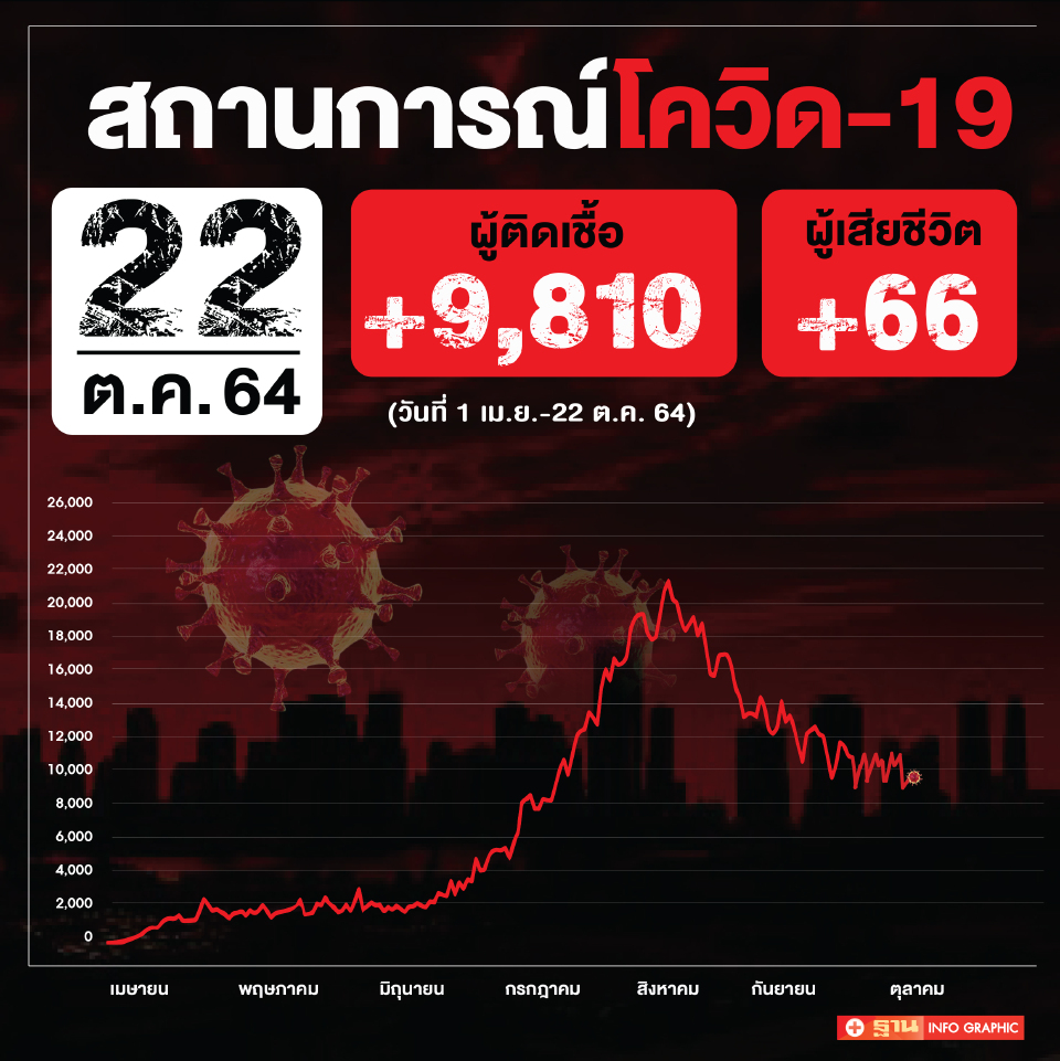 โควดวนน ไทยพบตดเชอรายใหม 9810 ราย เสยชวตเพม 66 ราย. สถานการณโควด 22 ตลาคม 2564 ใหมลาสด ยงตำหมน.
